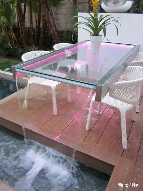 噴泉中的水分層連續(xù)流出,或呈臺階狀稱為疊水。“有山皆是園,無水不成景”,高低錯(cuò)落的臺階,清脆悅耳的潺潺流水,給人以回歸自然的享受。