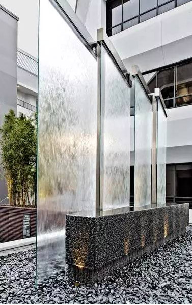 水幕墻是人為景觀,適用于室內(nèi)和室外,給人以享受緩緩的水流,水霧蒙蒙的感覺。