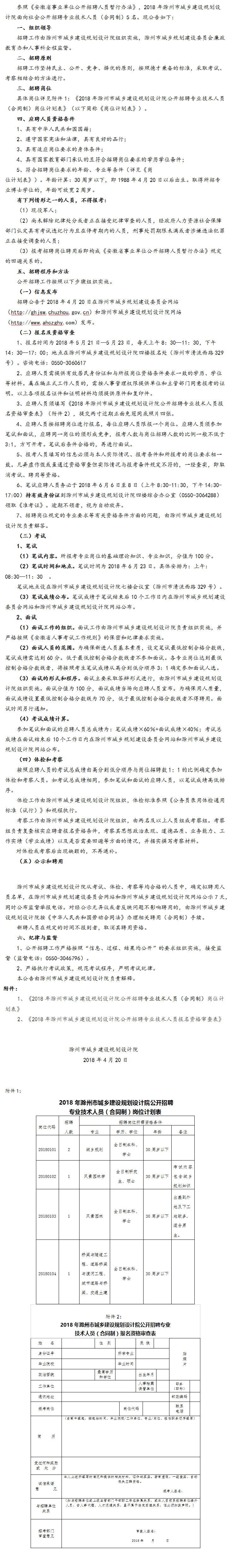 2018年滁州市城鄉(xiāng)建設(shè)規(guī)劃設(shè)計院公開招聘專業(yè)技術(shù)人員(合同制)公告